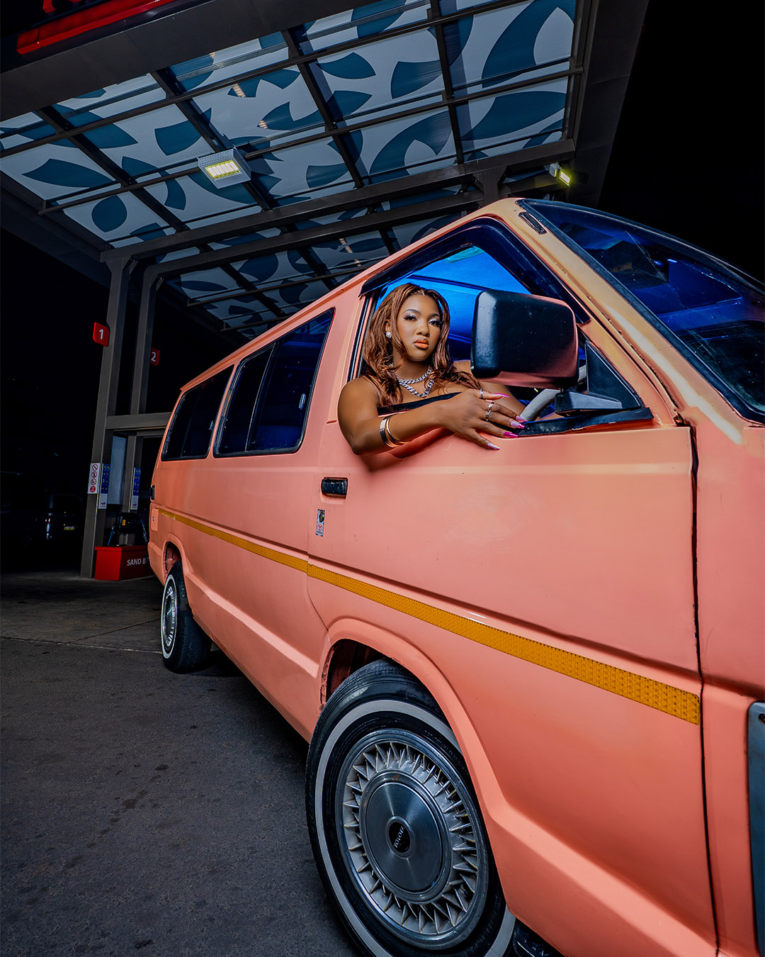 This outdoor photoshoot captures the grace, confidence, and natural beauty of Mandisa in a setting where colour enhances every moment.